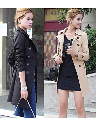 DianShao Donna Cappotti Trench Risvolto Doppiopetto Cappotto Lungo Giacca con Cintura Cachi XL