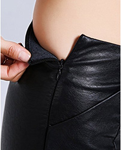 DianShao Donne Pu Pantaloncini A Vita Alta Shorts Casuale Pelle Sintetico Nero M