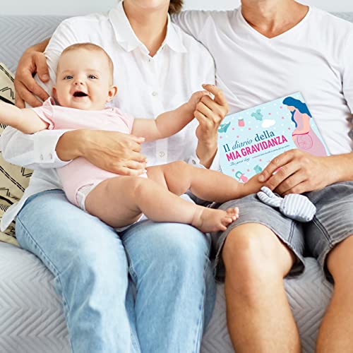 IL DIARIO DELLA GRAVIDANZA - 9 mesi 40 settimane 84 pagine tutte da scrivere e da vivere, Promesse Mamma e Papà incluse, Packaging Regalo dal design unico, 2 Etichette Adesive Maschio e Femmina.