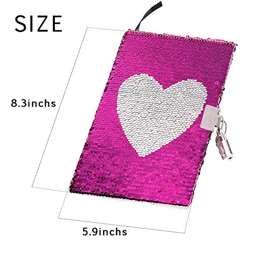 Il pacco include: 1 PC sequin segreto diario chiudibile a chiave (con serratura e chiave), 78 pagine con linee- formato perfetto per borsetta e zainetto, anche zaino-bella set di cancelleria per notebook