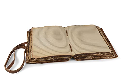 Diario In Pelle D'Epoca Con Carta a Righe Antica Con Bordo grezzo - Taccuino In Pelle Invecchiata Perfetto Per Scrivere - 15.25cm x 23cm