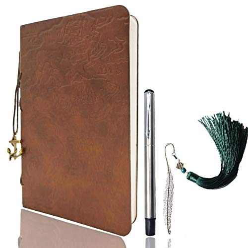 Diario di Viaggio Diario Notebook,Taccuino in Pelle PU,Notebook Rilegato in Pelle Punteggiata,Blocco Note Vintage,Notebook da Pelle Fatto a Mano Perfetto per Scrivere, Poeti, Viaggiatori