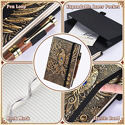Diario di Viaggio, Taccuino Pelle Righe Copertina Rigida,Quaderno di Viaggio Goffrata, Fatto a Mano, 200 Pagine, travel journal Regalo per Donna Uomo (Fenice,Bronzo)