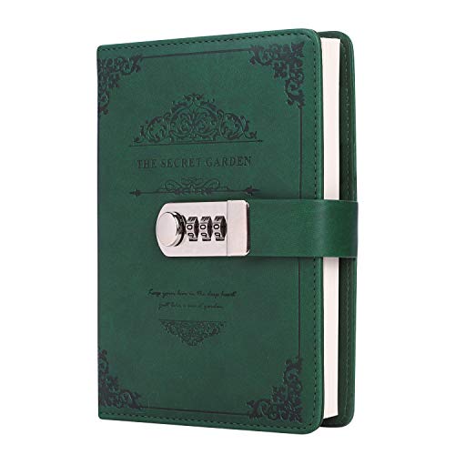 Diario vintage con lucchetto a combinazione, 20 x 13 cm, taccuino in ecopelle, taccuino a righe, 200 pagine