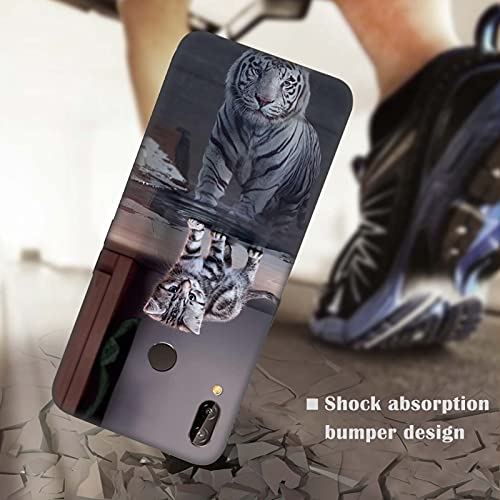 DiaryTown 2 Cover per Huawei P20 Lite Custodie TPU Silicone con Bello Animale Disegno Motivi Antiurto Protettivo Nero Cover Gomma Ultra Sottile Morbido Cover per Huawei P20 Lite - Gatto/Tigre