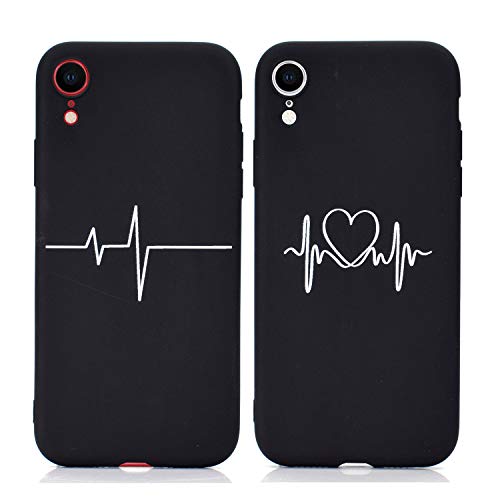 DiaryTown 2 Cover per iPhone XR Silicone Morbida, Custodia iPhone XR Nero con Disegni Case Antiurto Protettivo TPU Sottile Accessori Telefoni, Love Heartbeat