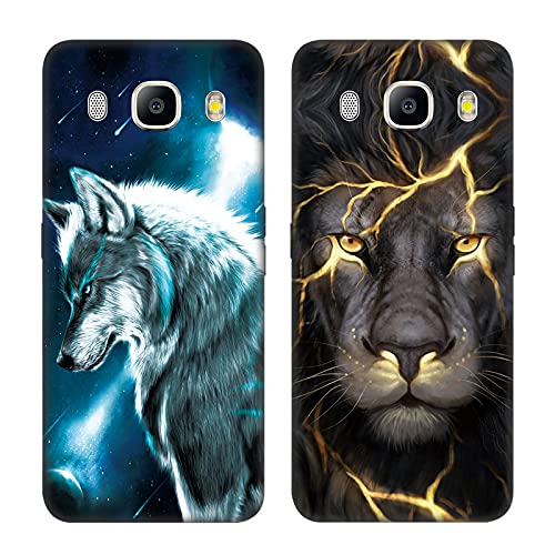DiaryTown 2 Cover per Samsung J7 2016 Custodie TPU Silicone con Bello Animale Disegno Motivi Antiurto Protettivo Nero Cover Gomma Ultra Sottile Morbido Cover per Galaxy J710 - Lupo/Leone D'Oro