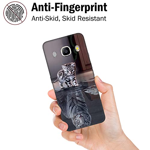 DiaryTown 2 Cover per Samsung J7 2016 Custodie TPU Silicone Morbida con Bello Animale Disegno Motivi Antiurto Protettivo Nero Cover Gomma Ultra Sottile Morbido Cover per Galaxy J710 - Gatto/Tigre