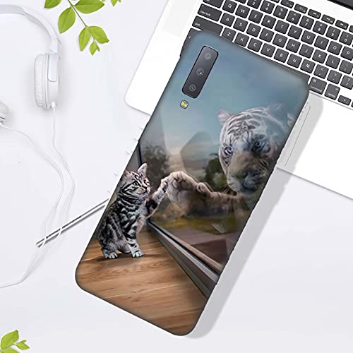 DiaryTown 2 Cover per Samsung A7 2018 Custodie TPU Silicone Morbida con Bello Animale Disegno Motivi Antiurto Protettivo Nero Cover Gomma Ultra Sottile Morbido Cover per Galaxy A7 2018 - Gatto/Tigre