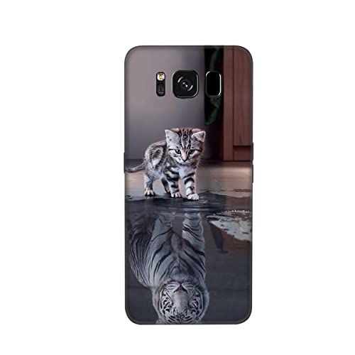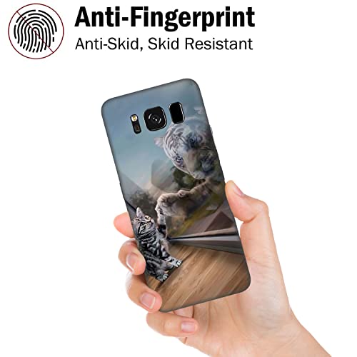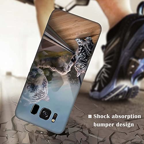 DiaryTown 2 Cover per Samsung S8 Custodie TPU Silicone Morbida con Bello Animale Disegno Motivi Antiurto Protettivo Nero Cover Gomma Ultra Sottile Morbido Cover per Galaxy S8 - Gatto/Tigre