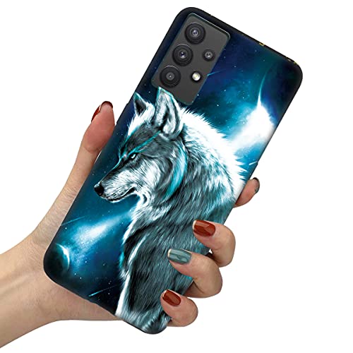 DiaryTown Cover per Samsung Galaxy A32 4G / A32 Lite, TPU Silicone Morbida Custodia con Bello Disegni Case Sottile Antiurto Bumper Cellulare Protettiva Nero Cover per Ragazze Donne, Lupo Spaziale