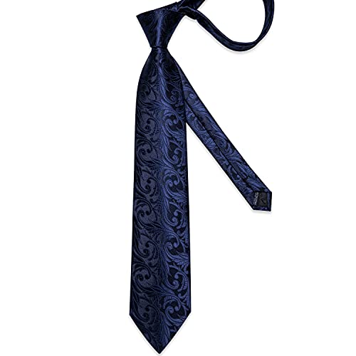 DiBanGu Cravatta Fazzoletto di seta Paisley floreale cravatta tasca quadrata gemelli cravatta clip Set, blu navy, Taglia unica