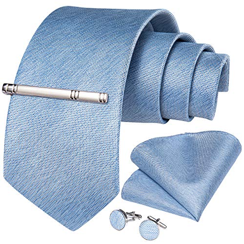 DiBanGu Cravatta da uomo in seta tinta unita cravatta e tasca quadrata da matrimonio gemelli Set formale, 04 Azzurro, Taglia unica