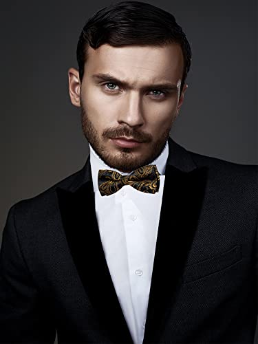 DiBanGu Papillon di seta da uomo con tasca quadrata bavero gemelli con papillon auto-legato, Nero Oro Paisley, Taglia unica