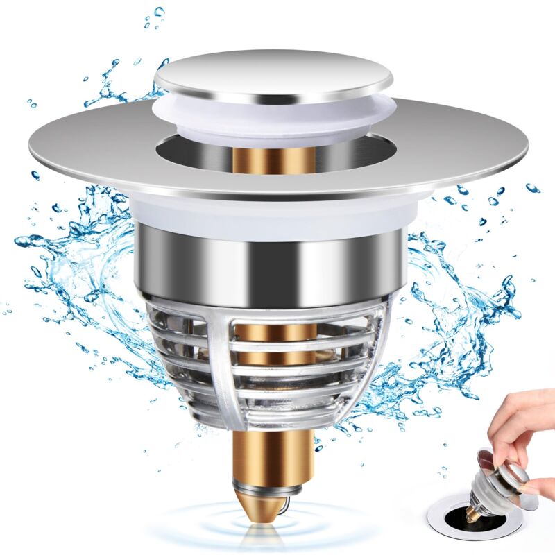 Dimensioni universali: Questo tappo lavandino bagno per vari tipi di scarichi del cestello del filtro a scomparsa. Adatto per fori di scarico con un diametro interno da 32 mm a 42 mm (1,26-1,65 pollici). ⭐Nota: misurare le dimensioni del foro di scarico prima dell'acquisto per evitare che il prodotto non si adatti al foro di scarico.