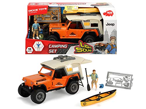 Dickie Playlife Set Campeggio con Jeepster Commando, barca a remi, personaggio articolato, luci suoni e accessori