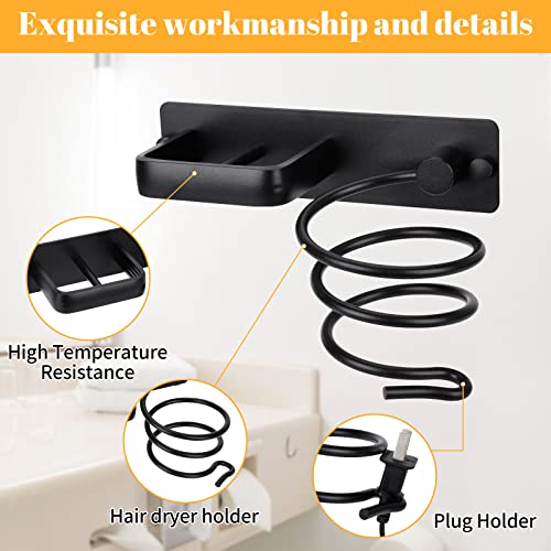 【Pratico Accessorio per il Bagno】Il supporto per montaggio a parete dell'asciugacapelli ha un design a spirale che tiene i'asciugacapelli e ne impedisce il movimento,la parte inferiore del supporto dell'asciugacapelli ha un gancio per appendere ia spina dell'utensile elettrico,un piccolo design molto utile.