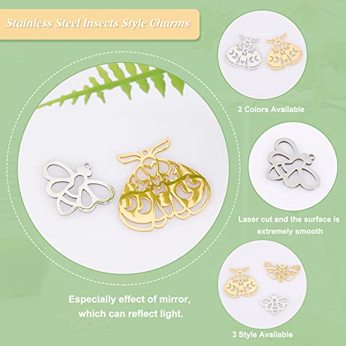 3 stile 2 colori: 12 pezzi, compreso lo scarabeo, farfalla, ciondolo api, 2 colori (colore dorato e acciaio inossidabile). I ciondoli in diversi stili e colori aggiungono un tocco accattivante a te.