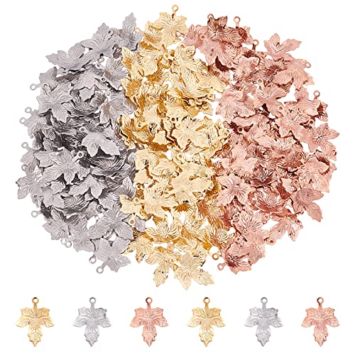 DICOSMETIC 150Pcs 3 Colori Acciaio Inossidabile Foglia D'Acero Ciondoli Oro e Oro Rosa Creazione di Gioielli Pendenti e Ciondoli per Fai Da Te Creazione di Gioielli, Foro: 1mm