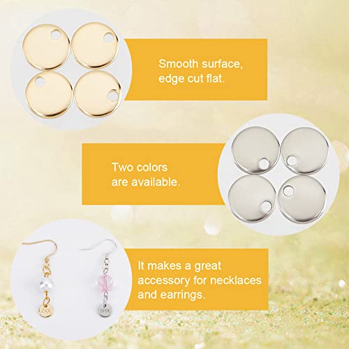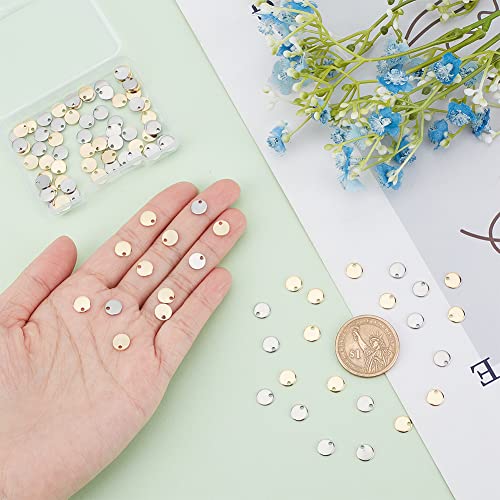 DICOSMETIC 100 pz 2 Colori 7mm 304 Acciaio Inossidabile Piatto Rotondo Pendenti Stampaggio Pendenti e Ciondoli In Bianco Superficie Liscia Pendenti e Ciondoli per Creazione di Gioielli, Foro:1.4mm
