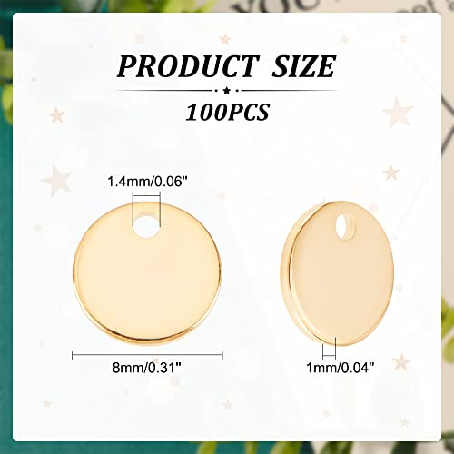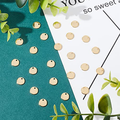 DICOSMETIC 100 Pz Stampaggio Vuoto Tag Ciondoli Ciondoli Rotondi Piatti Dorati 8 mm Ciondoli Rotondi Vuoti Ciondoli Incisi In Acciaio Inossidabile Bulk per Creazione di Gioielli, Foro: 1.4 mm