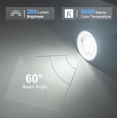 ⭐【Luce luminosa】 DiCUNO lampadina LED MR16 GU5.3 5W emette 380LM, luce bianca fredda 6000K da un angolo del fascio di 60 gradi. La temperatura del colore di 6000 K può migliorare notevolmente l'effetto della decorazione d'interni. L'angolo del fascio di 60 ° crea un faretto focalizzato adatto ad ogni tua stanza. NON DIMMERABILE e NESSUN FLICKER.