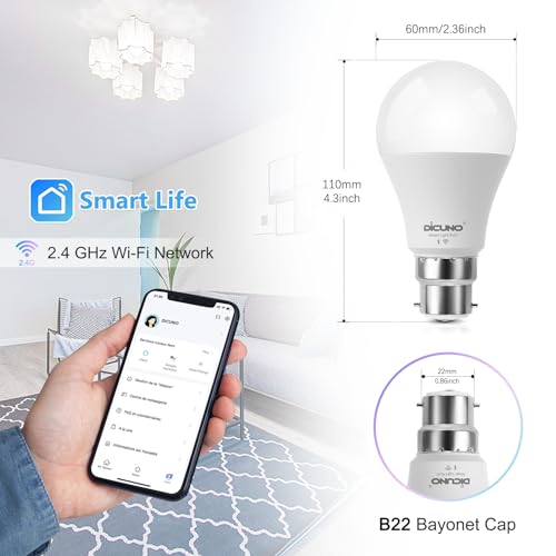 DiCUNO Lampadine Wi-Fi LED Inteligente E27, Lampadine Intelligenti con Alexa e Google Home, 9W Dimmerabile Multicolore 2700K-5000K RGBCW, 800LM Equivalente 60W, Nessun Hub Richiesto, 6 Pezzi