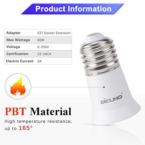 DiCUNO E27 Portalampada 3 CM extension, Da E27 a E27 Prolunga per presa lampada standard, Estensione della lampadina, Adattatore per portalampada, Pacchetto di 4