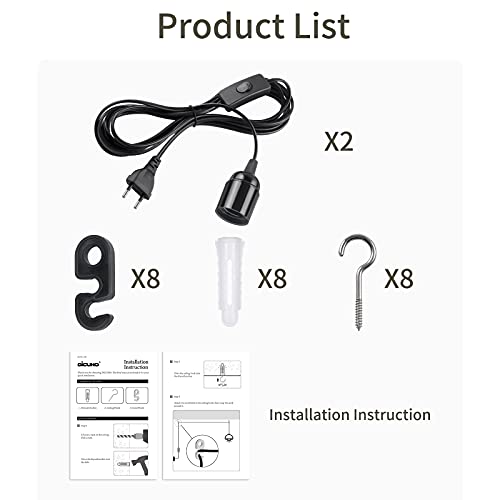 DiCUNO Portalampada E27 con filo, Portalampada E27 a sospensione con pulsante On/Off per soffitto, camera e cucina, Nero, 0-250V, 4A, 4M, 2 pezzi