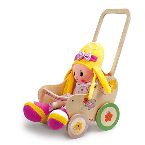 Dida - Passeggino Fiore in Legno per Bambole da 35 cm - Giocattolo Montessori per Bambini di 2-3 Anni
