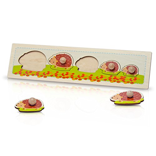 Dida - Seriazione Riccio. Puzzle in Legno per Bambini, con Sequenza di Tessere ad Incastro con Comodi pomelli di Legno.