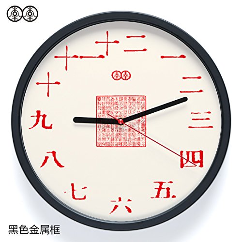 DIDADI Wall Clock Arte orologio da parete-tavolo antico cinese Cina wind kanji legno massello creative soggiorno mute orologio al quarzo, 12" di diametro 30,5 cm, guarnizioni, black metal box
