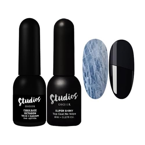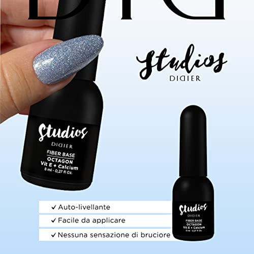 Didier Lab - Premium Base e Top Coat Semipermanente - Kit Semipermanente Unghie - Gel UV LED - Smalti Semipermanenti per Unghie - Octagon Fiber Base Semipermanente Unghie - Super Shiny Top Coat Gel