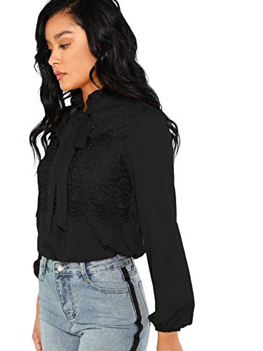 DIDK Camicetta da donna elegante in chiffon con collo alto, tinta unita, maniche lunghe, con volants e volants