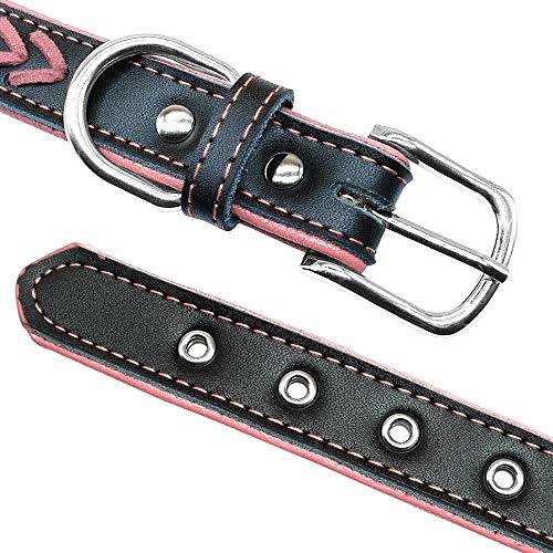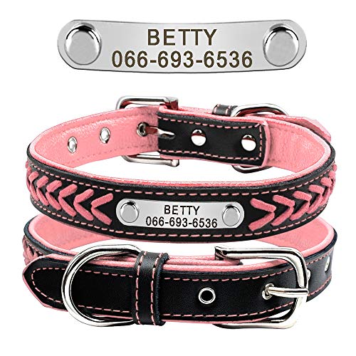 Didog, collare per cani in pelle intrecciata, con targhetta personalizzata per cani di taglia piccola, media e grande, rosa, taglia S