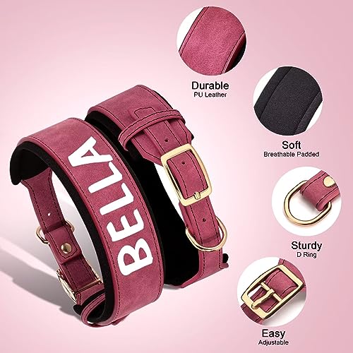 Didog Collare per cani personalizzato imbottito, collare cane personalizzato con nome grande, ampio collare in pelle per cani di taglia medio-grande, rosso L