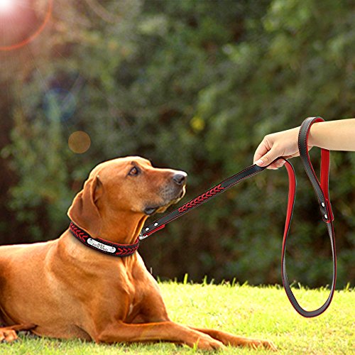 Didog Set di collare e guinzaglio per animali domestici con imbottitura in pelle, con incisione personalizzata, per cani e gatti di piccola taglia media, rosso, taglia S