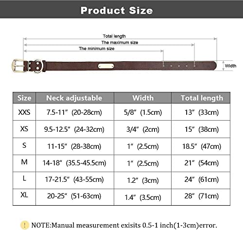 100% morbida vera pelle: è realizzata in pelle naturale pieno fiore, resistente e morbida vera pelle, super adatta per l'uso quotidiano degli animali domestici. Questo collare per cani in pelle di qualità si adatta bene anche a camminare o allenarsi.