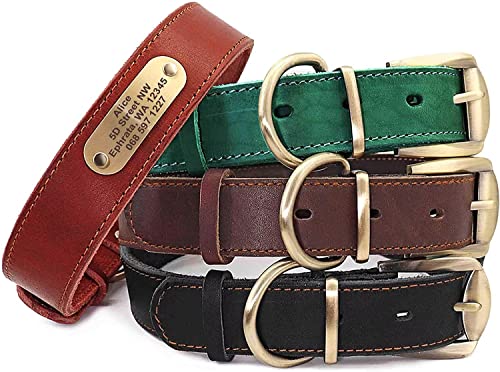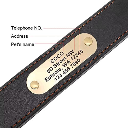 Didog Collari per Cani in Vera Pelle con Targhetta Incisa, Collare per Cani in Morbida Pelle Personalizzato per Cani di Taglia Media,M,Nero