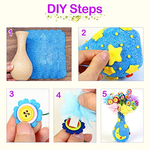 Diealles Shine Craft Kit per Bambino, Lavoretti Creativi Bottiglia da Fiori Kit, Vaso Fai da Te con Bottoni Bouquet Ragazza Fiori in Tessuto per Ragazze Ragazzo, Stile 2