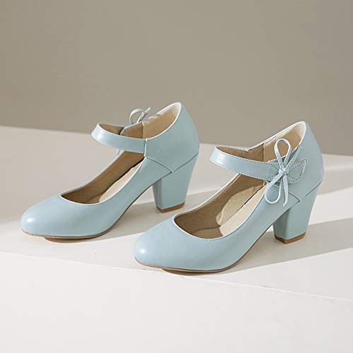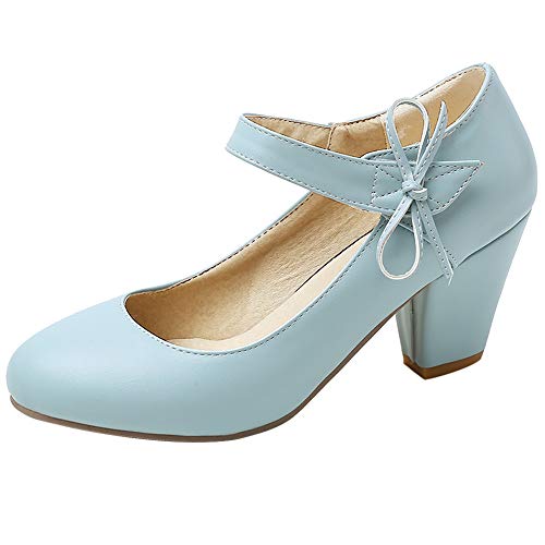 Dieenia Donna Classico Mary Jane Scarpe Gancio Orientabile Tacco Alto Scarpe Punta Rotonda Festa Scarpe Solid Vestito Scarpe Blu 40 EU/41CN
