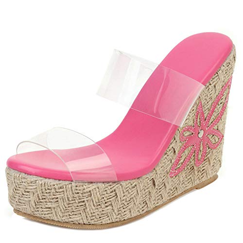 Dieenia Muli Donna Zeppa Espadrilles Trasparente Tacco Alto Sandali Senza Chiusura Festa Sandali Punta Aperta Rose Rosso Numero 32 EU