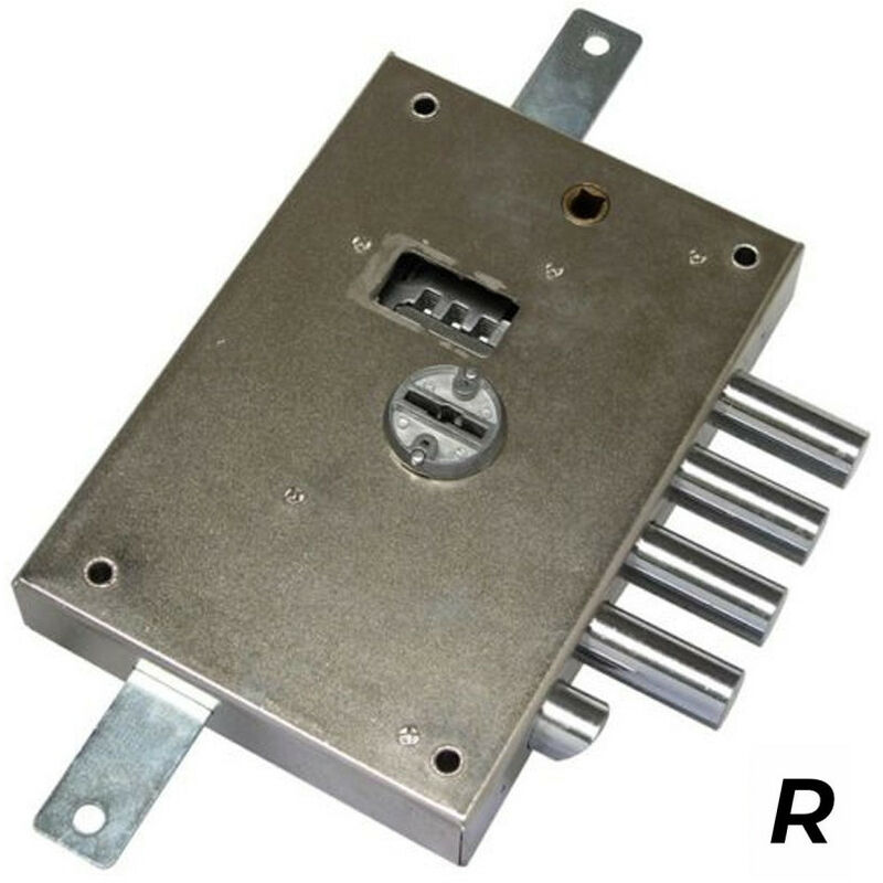 Serratura doppia mappa triplice ad applicare con scrocco azionato da quadro maniglia 8 e dalla chiave, serie Heavy. Entrata chiave e maniglia 60 mm. Disponibile serratura: Destra SER 6111 1DE Sinistra SER 6112 1SE Misure come da immagini.