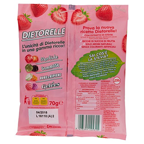 Dietorelle - Caramelle Morbide Vegan Fragola, Caramelline Morbide, Senza Zucchero, Senza Glutine, Con Dolcificante Naturale - 70 Gr