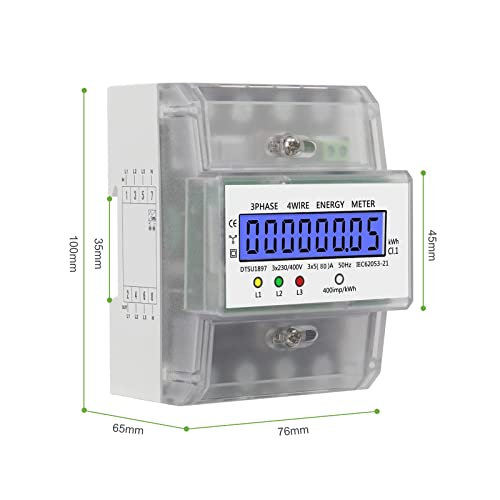 DIFCUL Contatore di Corrente 230/400 V 5-80 A, consumo di energia, contatore di Corrente alternata a 3 Fasi, contatore KWh, contatore di Corrente alternata per sistemi di misurazione della Potenza