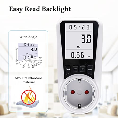 DIFCUL Misuratore di Consumo Elettrico, Misuratore dei costi di corrente, misuratore consumo elettrico con Schermo LCD, Protezione da Sovraccarico, Wattmetro Misura Consumo Energia