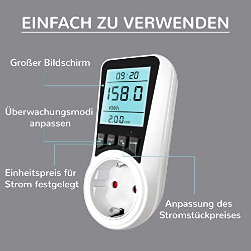 DIFCUL Misuratore Di Consumo Elettrico - Misura Consumo con LCD Retroilluminato - 7 monitoraggio dei dati - Misuratore di Potenza con 16A/3680W Protezione da Sovraccarico - Contatore elettrico presa