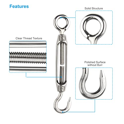 ✅【Tipo】: tenditore M4 in acciaio inox con occhiello e gancio.