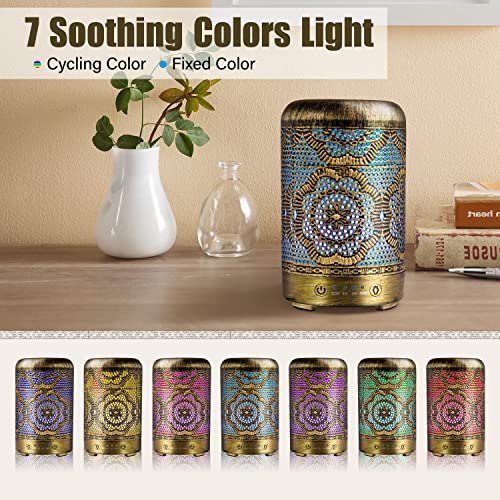 Diffuserlove Diffusore di Oli Essenziali in Metallo Vintage ambiente 100 ml Umidificatori Diffusore di Oli Aromaterapia con 4 Modalità Timer e 7 Luci LED
