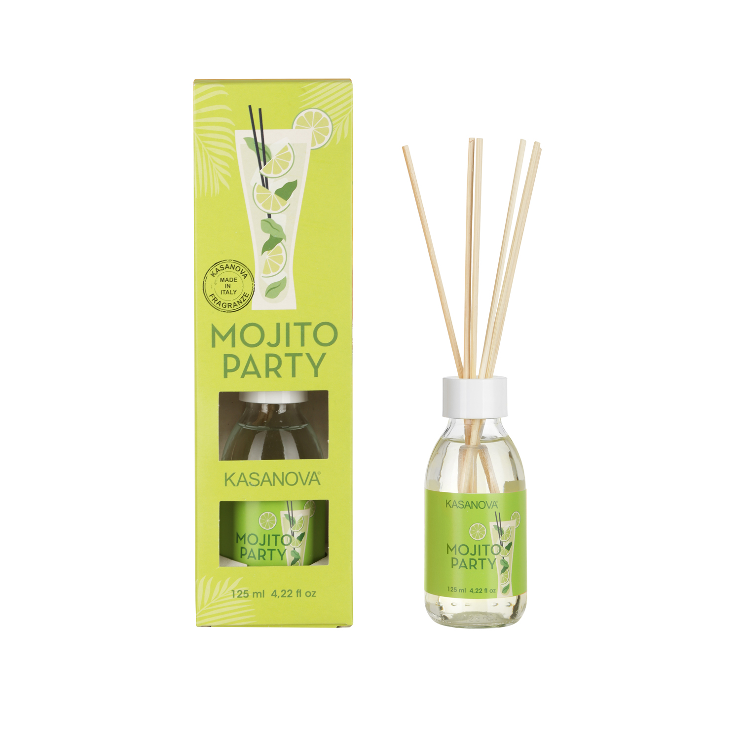 La linea di diffusori di fragranza Cocktail di con le sue fresche profumazioni ispirate ai più celebri e amati drink, è perfetta per rinfrescare la casa e diffondere piacevoli note olfattive. La boccetta è completa di un'essenza fresca alla menta ispirata al Mojito, perfetta per coprire eventuali cattivi odori in casa e creare un'atmosfera accogliente nei mesi più caldi. Il diffusore a bastoncini garantisce un rilascio graduale e prolungato e puoi girarli ciclicamente per consentire una migliore diffusione in casa. Il profumatore ha capacità di 125 ml. Dimensione: h23,5x4,5 cm.
